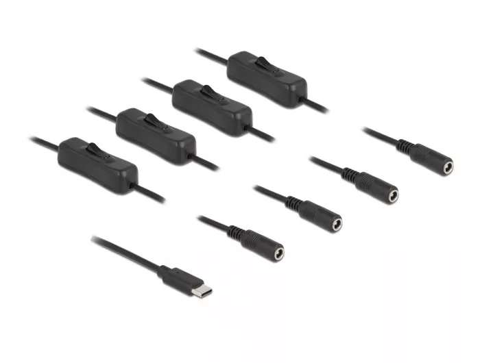 Delock USB Type-C apa 4 db. DC 5,5 x 2,1 mm anya csatlakozójú, 1 méter hosszú kábel (DL-86802)