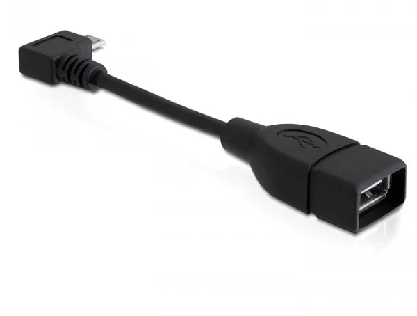 A Delock derékszögű USB micro kábele lehetővé teszi mobileszköze Micro USB-B portjának átalakítását USB-A csatlakozóhüvelyre. Így például szabványos USB-porttal rendelkező HDD-t vagy memóriakulcsot csatlakoztathat mobiltelefonhoz, okostelefonhoz, tábla PC-hez stb. OTG támogatás mellett. Az OTG funkció lehetővé teszi a közvetlen adatáttöltést a mobileszköz és az USB-eszköz között, számítógép csatlakoztatása nélkül.