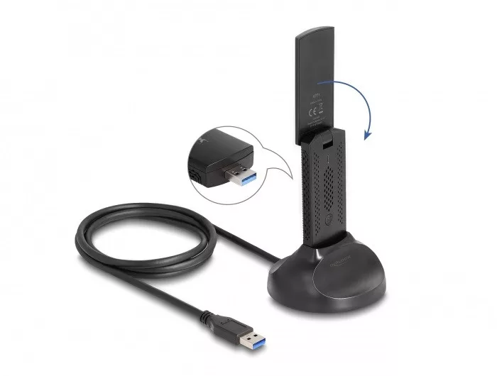 Leírás Ez a Delock vezetéknélküli LAN USB csatlakozó összeköthető egy számítógéphez, hogy csatlakoztassuk azt egy WLAN hálózathoz. A WLAN csatlakozó használható egy bemeneti ponttal vagy a WLAN routerrel egy 2,4 GHz és 5 GHz szalaggal. Wi-Fi 6 A 802.11ax technológia lehetővé teszi a gyors adatsebességet különösen sok eszközös környezetben. Mágneses alap Az antenna dőlésének változó hullámainak, valamint a mágneses alapnak köszönhetően, az antenna egyénileg pozícionálható. Műszaki adatok Csatlakozó: 1 x USB 5 Gbps A-típusú dugó Lapkakészlet: Realtek RTL8832BU 2T2R mód 1201 Mbps átviteli sebességgel az 5 GHz-es sávban, illetve 574 Mbps sebességgel a 2,4 GHz-es sávban Frekvenciatartomány 2,4 GHz: 2,400 - 2,4835 GHz Átviteli teljesítmény (EIRP) 2,4 GHz: max. 100 mW Frekvenciatartomány 5 GHz: 5,150 - 5,350 GHz, 5,470 - 5,725 GHz Átviteli teljesítmény (EIRP) 5 GHz: max. 200 mW Támogatja a MU-MIMO, OFDMA, 1024QAM használatát Megfelel az IEEE 802.11ax/ac/a/n/b/g szabványoknak WEP, WPA, WPA2, WPA3 titkosítás Antennaerősítés: 3 dBi Támogatja a DFS (Dynamic Frequency Selection) használatát 1 x működés visszajelző LED WPS gomb Szín: fekete Eszköz méretei csatlakozóval együtt (HxSzxM): kb. 94 x 37 x 16 mm Rendszerkövetelmények Windows 10/10-64/11 PC vagy notebook számítógép szabad USB A-típusú-csatlakozóval A csomag tartalma WLAN USB-pendrive Mágneses alap, kábel hossz kb. 1,2 m Használati utasítás Csomag Retail Box