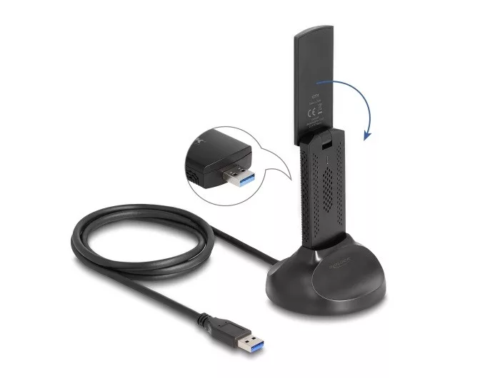 Leírás Ez a Delock vezetéknélküli LAN USB csatlakozó összeköthető egy számítógéphez, hogy csatlakoztassuk azt egy WLAN hálózathoz. A WLAN csatlakozó használható egy bemeneti ponttal vagy a WLAN routerrel egy 2,4 GHz, 5 GHz és 6 GHz szalaggal. Wi-Fi 6E A 802.11ax technológia lehetővé teszi a gyors adatsebességet különösen sok eszközös környezetben. A 6 GHz-es sávban található további Wi-Fi frekvenciák nagyobb átviteli teljesítményt és stabilabb kapcsolatokat tesznek lehetővé a nagy bitsebességű alkalmazások, például a videohívás, a játék vagy a streaming számára. Mágneses alap Az antenna dőlésének változó hullámainak, valamint a mágneses alapnak köszönhetően, az antenna egyénileg pozícionálható. Műszaki adatok Csatlakozó: 1 x USB 5 Gbps A-típusú dugó Lapkakészlet: Realtek RTL8832CU 2x2 (Tx/Rx) mód 2402 Mbps átviteli sebességgel az 6 GHz, 5 GHz-es sávban, illetve 574 Mbps sebességgel a 2,4 GHz-es sávban Frekvenciatartomány 2,4 GHz: 2,400 - 2,4835 GHz Átviteli teljesítmény (EIRP) 2,4 GHz: max. 100 mW Frekvenciatartomány 5 GHz: 5,150 - 5,350 GHz, 5,470 - 5,725 GHz Átviteli teljesítmény (EIRP) 5 GHz: max. 200 mW Frekvenciatartomány 6 GHz: 5,945 - 6,425 GHz Átviteli teljesítmény (EIRP) 6 GHz: max. 200 mW Támogatja a MU-MIMO, OFDMA, 1024QAM használatát Megfelel az IEEE 802.11ax/ac/a/n/b/g szabványoknak WEP, WPA, WPA2, WPA3 titkosítás Antennaerősítés: 5 dBi Támogatja a DFS (Dynamic Frequency Selection) használatát 1 x működés visszajelző LED Szín: fekete Eszköz méretei csatlakozóval együtt (HxSzxM): kb. 94 x 37 x 16 mm Rendszerkövetelmények Windows 10/10-64/11 PC vagy notebook számítógép szabad USB A-típusú-csatlakozóval A csomag tartalma WLAN USB-pendrive Mágneses alap, kábel hossz kb. 1,2 m Használati utasítás Csomag Retail Box