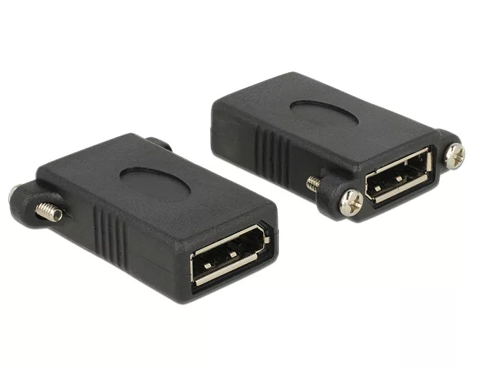 Ez a Delock által gyártott adapter felhasználható a DisplayPort kapcsolat kiterjesztésére és különféle eszközök csatlakoztatására. A belső aljzat két csavarral, pl. a rés konzoljára, kábelcsatornára vagy a megfelelő nyílással ellátott házra. Ilyen módon a DisplayPort csatlakozó könnyen hozzáférhető helyzetbe helyezhető.