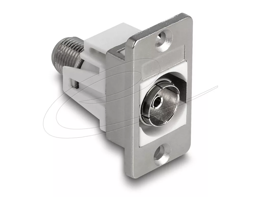 Ez a Delock IEC-F paneltartó antennakábelek csatlakoztatására használható, és házba szerelhető.