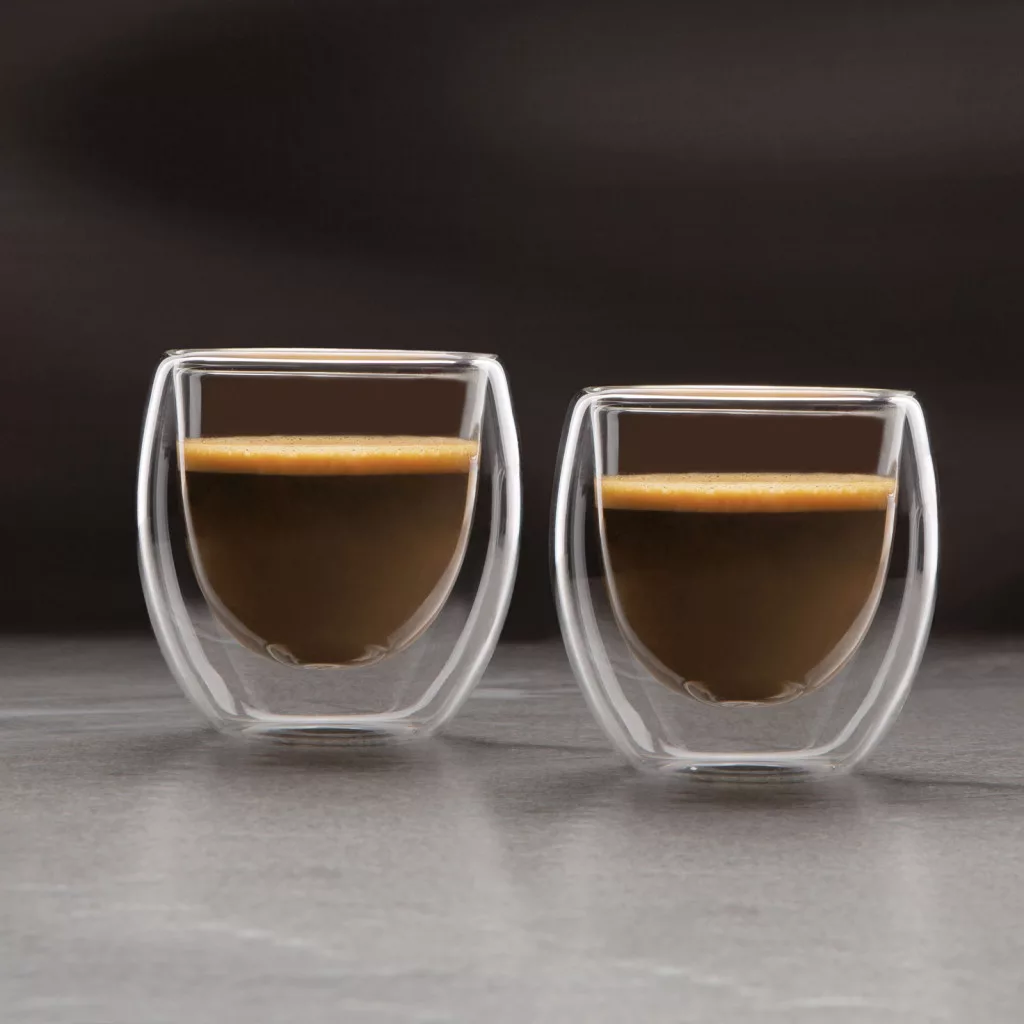 Az önfeledt kávézás, italfogyasztás öröme érdekében modern megjelenésű, duplafalú, boroszilikát üvegből készült pohár szett. Kiválóan alkalmas kávézáshoz, forró és hideg italok fogyasztására is. A dupla üvegfalnak köszönhetően a forró italok nem égetik meg a kezet.