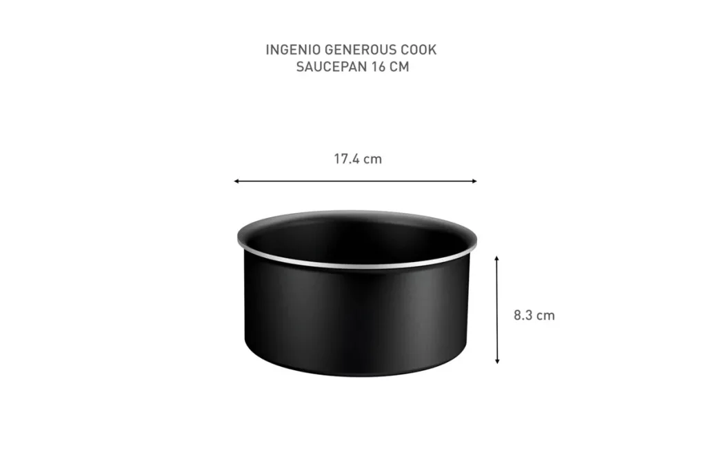 A Tefal Ingenio Generous Cook edény fejlett Thermo-Fusion™ indukciós technológiával rendelkezik, amely gyors felmelegedést és egyenletes főzési eredményt biztosít. Helytakarékos kialakítású és minden típusú tűzhelyhez alkalmas, beleértve az indukciósat is.