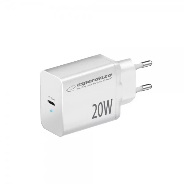 Gyorstöltő akár 20 W teljesítménnyel. Lehetővé teszi az eszközök akár háromszor gyorsabb töltését, mint a hagyományos készülékek használatával. A töltő kompatibilis a legtöbb okostelefonnal, táblagéppel és egyéb USB-C kábellel működő eszközzel. Számos védelemmel van felszerelve, amelyeknek köszönhetően mind a töltő, mind a készülékei védve vannak a sérülésektől. A széles bemeneti feszültségtartománynak köszönhetően (110-240 V) a töltő számos országban használható. Kis méretének köszönhetően tökéletes kiegészítő, amelyet utazás közben magával vihet. A túlmelegedés, rövidzárlat és túlterhelés elleni fejlett védelmi rendszerek a feltöltött eszközök, valamint magának a töltőnek a védelmét szolgálják. Az intelligens chip automatikusan kiválasztja a töltőhöz csatlakoztatott eszközök hatékony töltéséhez szükséges áramerősséget. Kimenet: USB-C Támogatott töltési szabványok: Power Delivery 20 W Bemeneti feszültség: AC 110-240 V / 50-60 Hz Bemeneti áram: Max 0,6 A Kimeneti áram és feszültség: 5V/3A, 9V/2.22A, 12V/1.67A Kimeneti teljesítmény: max. 20 W Beépített automatikus áramszabályozó rendszer a töltendő készüléktől függően Beépített védelem túlfeszültség, rövidzárlat és túlmelegedés ellen