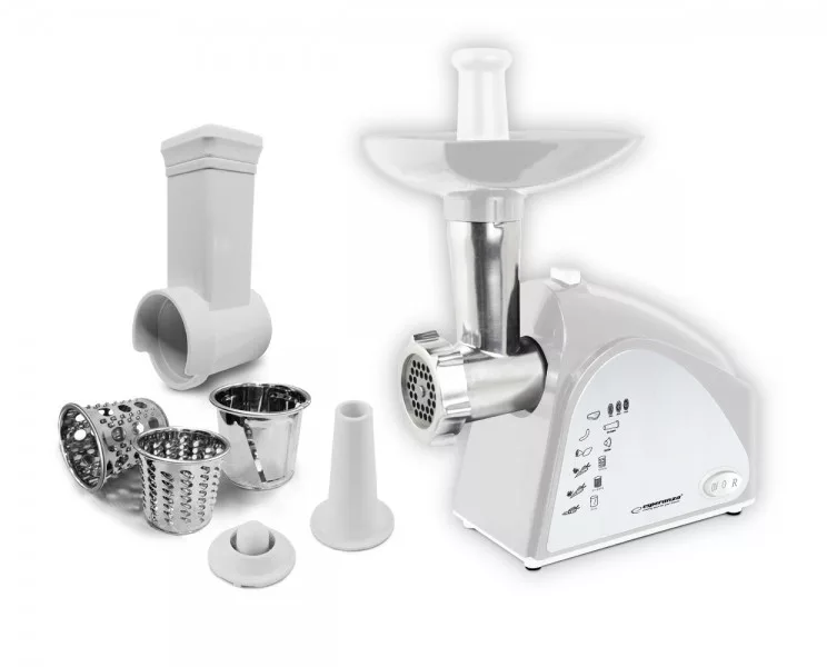 Az Esperanza RISSOLE aprítógépes húsdaráló egy modern és funkcionális eszköz, amely minden otthoni konyhában nagyon hasznos lesz. A "húsdaráló" funkcióban nem csak a húst, hanem más élelmiszereket is könnyedén darál, míg a kiegészítő tartozékok lehetővé teszik kolbász vagy "kebbe" készítését. Az "aprító" funkcióban az Esperanza RISSOLE kiválóan alkalmas gyümölcsök, zöldségek, kemény sajtok, csokoládé, diófélék aprításában vagy a morzsa feltét elkészítésében. A csúszásmentes gumilábak biztosítják a készülék stabil és biztonságos működését. Sokoldalúság és precizitás az Ön konyhájában 3 CSISZOLÓLEMEZ KÜLÖNBÖZŐ MÉRETEKBEN KOLBSZ- ÉS KEBBE KÉSZÍTŐ FELSZERELÉSEK FUNKCIONÁLIS ÉS HATÉKONY Maximális teljesítmény: 2200 W Hosszú élettartamú rozsdamentes acél penge Fém csavarhajtás 3 csiszolólap különböző furatátmérőkkel: 3,0 mm, 5,0 mm, 7,0 mm Előre és hátra funkció Kolbászkészítő melléklet Kebbe-készítő melléklet 3 különböző aprító dob Csúszásmentes gumilábak a stabil működésért Nettó tömeg: 2,49 kg A termék méretei: 27,5 x 13,5 x 35,0 [cm] Tápkábel hossza: kb. 85 cm Tápellátás: 230 V, 50 Hz
