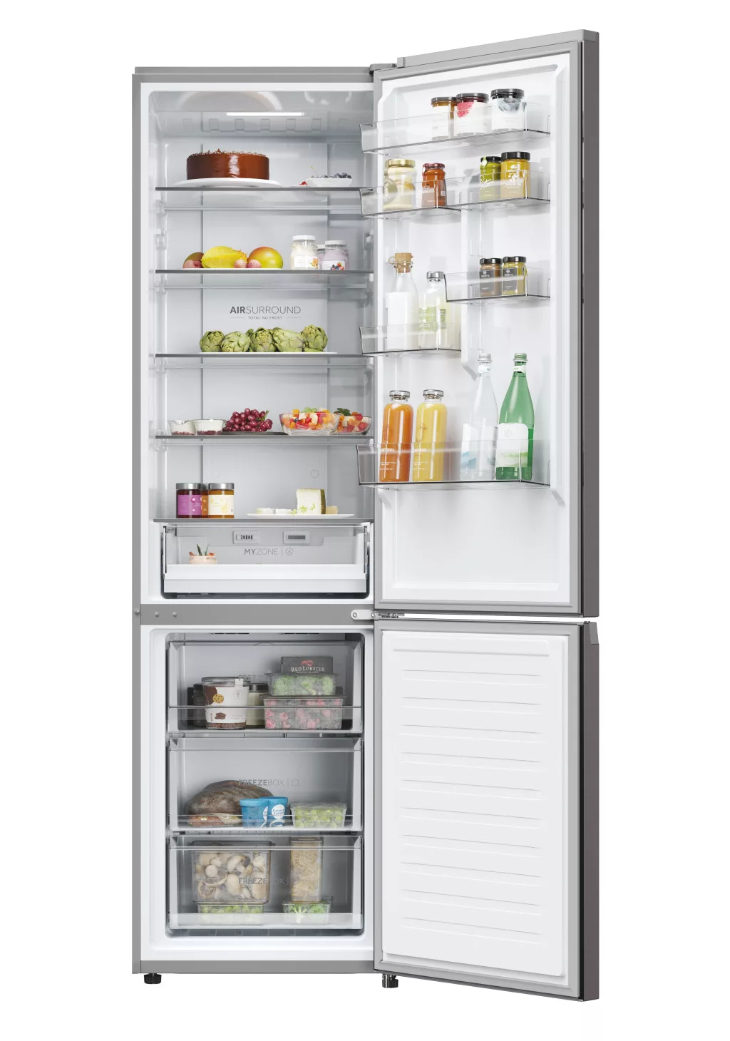 A Haier Air Surround Fresher Tech segítségével a levegő lágyabban áramlik a hűtőszekrény belsejében. A speciális laterális nyílásoknak köszönhetően ez a rendszer egyenletesen oszlatja el a hideg levegőt, amely átöleli az élelmiszereket a hűtőszekrény belsejében, így elkerülhető a hideg levegő közvetlen áramlása az élelmiszerekre, elkerülve a súlycsökkenést és kiszáradást. Így a Haier Air Surround megőrzi az ételek ízét, állagát és lédússágát akár 99%-ban*, és azok 7 nap elteltével is ugyan olyanok frissek lesznek, mint az 1. napon. *A vizsgálati eredményeket egy független külső műszaki laboratórium adta ki, amely összehasonlítja a Total No Frost Circle + technológiával felszerelt hűtőszekrényt egy közvetlen áramlási technológiás hűtőszekrénnyel