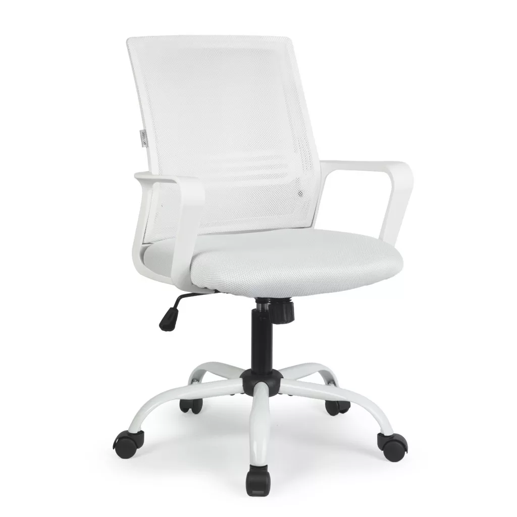 Modern megjelenésű, kényelmes irodai forgószék fehér színben, amely ideális választás otthoni vagy munkahelyi környezetbe. Ergonomikus kialakításának és állítható magasságának köszönhetően hosszabb ülések esetén is komfortos használatot biztosít. A háttámla és a karfák erős, de rugalmas anyagból készültek, míg az ülőfelület strapabíró rétegelt lemezre épül. A szék pillangómechanikával, gázlifttel és fém lábcsillaggal van ellátva, amely stabilitást és tartósságot garantál.