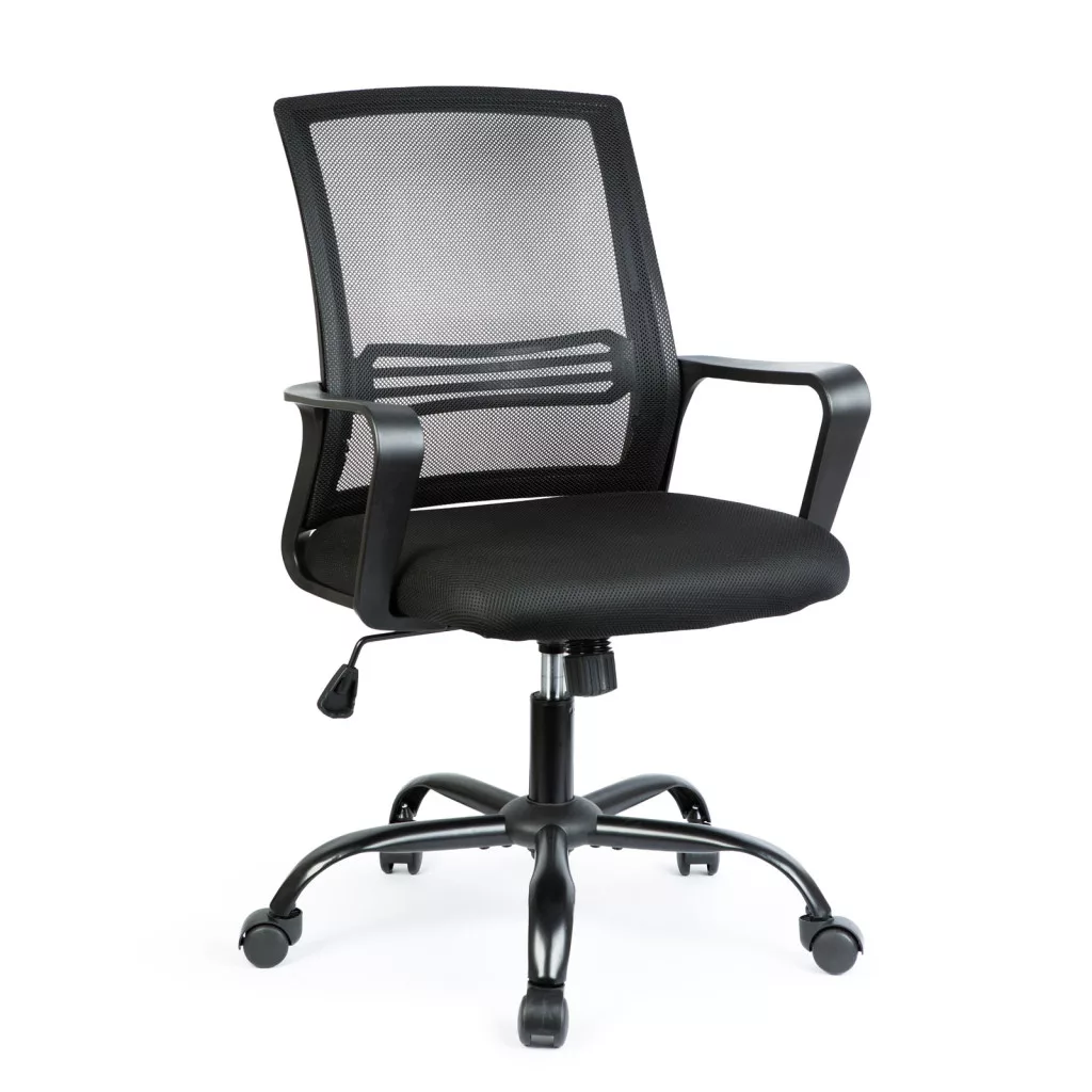 Modern megjelenésű, kényelmes irodai forgószék fekete színben, amely ideális választás otthoni vagy munkahelyi környezetbe. Ergonomikus kialakításának és állítható magasságának köszönhetően hosszabb ülések esetén is komfortos használatot biztosít. A háttámla és a karfák erős, de rugalmas anyagból készültek, míg az ülőfelület strapabíró rétegelt lemezre épül. A szék pillangómechanikával, gázlifttel és fém lábcsillaggal van ellátva, amely stabilitást és tartósságot garantál.
