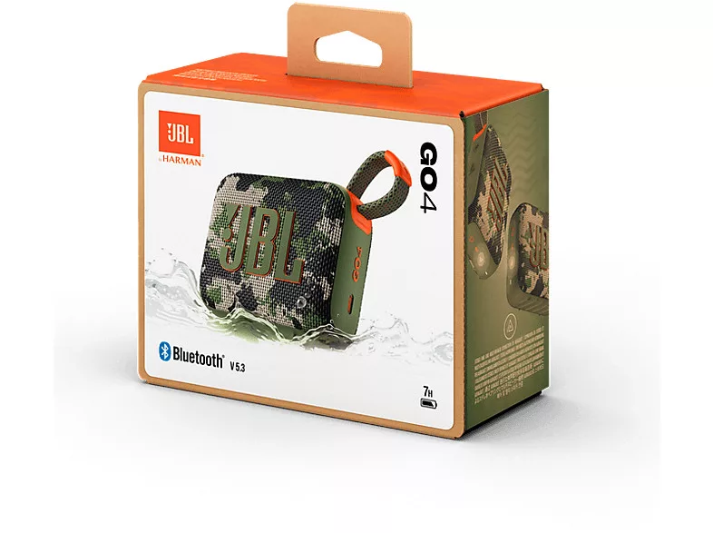 A JBL Go 4 újrahasznosított műanyagot és szövetet tartalmaz. FSC-tanúsítvánnyal rendelkező, szójafestékkel nyomtatott papírba csomagolva.