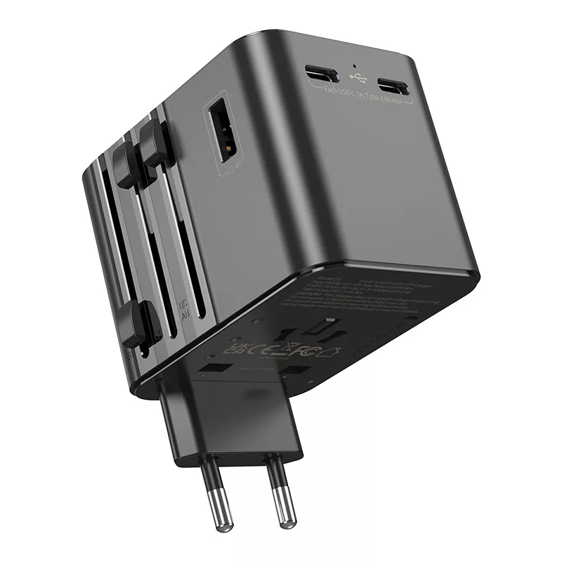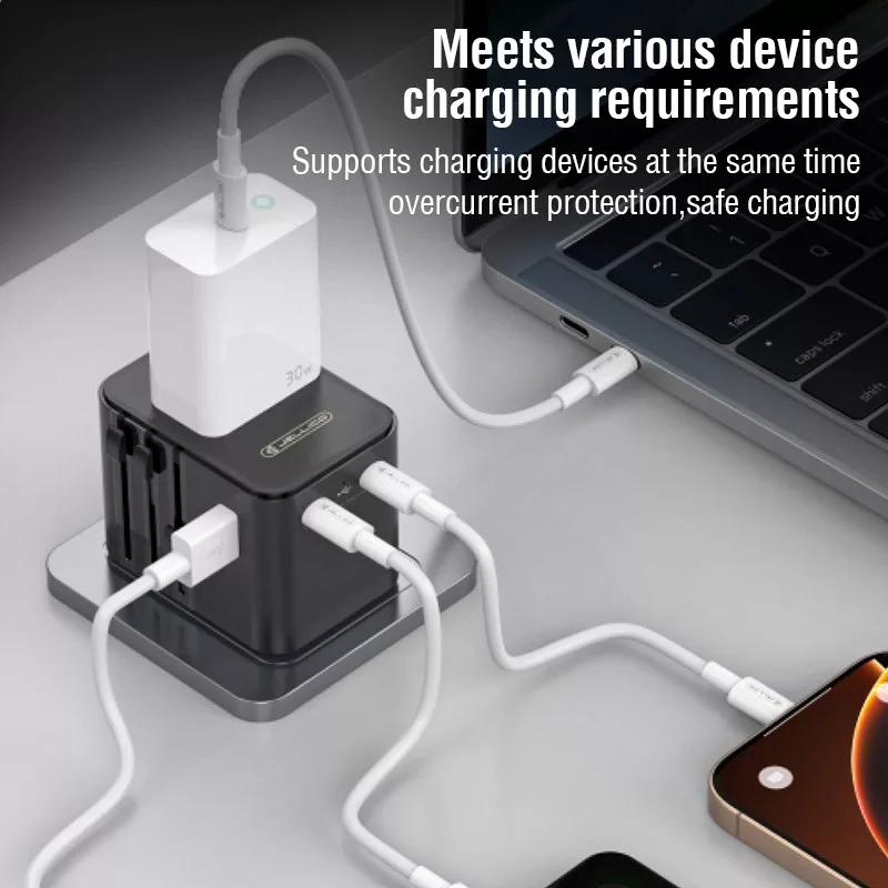 A JELLICO S9 univerzális utazó adapter a modern felhasználó minden igényét kiszolgálja: egyszerre tölthetsz két USB‑C és egy USB‑A eszközt, miközben a beépített Power Delivery (PD) technológia gyors és hatékony töltést biztosít a legújabb okostelefonoknak és táblagépeknek.