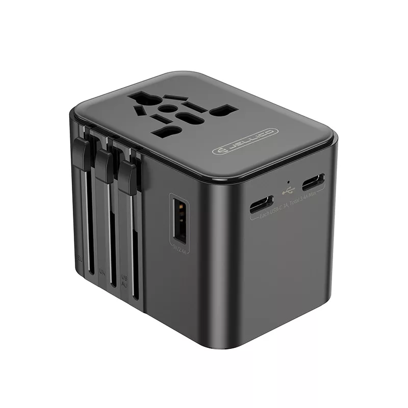 JELLICO S9 – Univerzális utazó adapter (2×USB‑C + 1×USB‑A, PD, max. 2500 W, fekete)