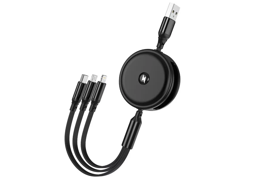 Ez a 1,2 méteres, fekete 3 az 1-ben kábel nemcsak praktikus, hanem **erős, stabil töltést is biztosít akár 3.1 A-ig, így gyorsabban töltheted eszközeidet otthon, irodában vagy útközben.