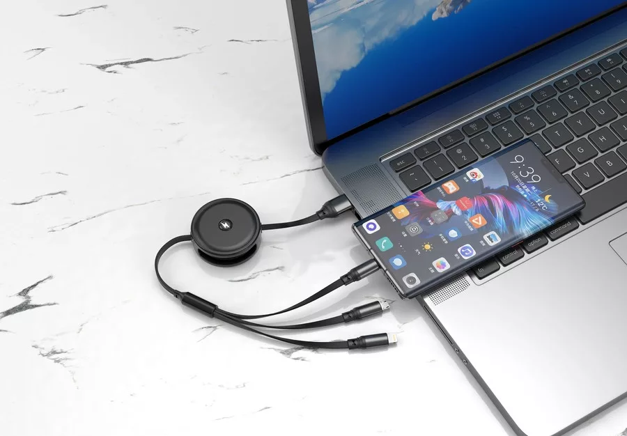 3 az 1-ben csatlakozók: USB-C + Lightning + micro-USB – egy kábel, több eszközhöz