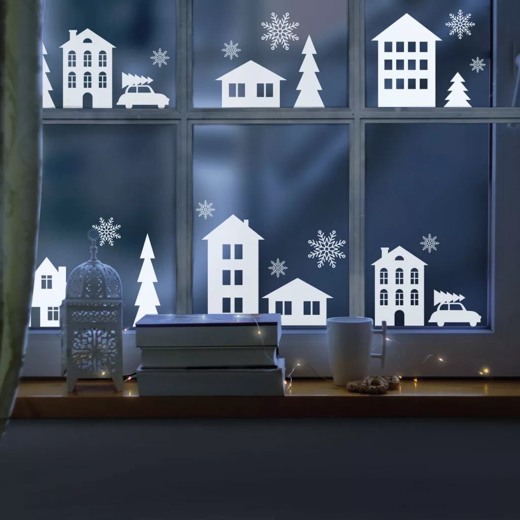 Vidám, karácsonyi ablakdekor az ünnepi hangulat megteremtéséhez. Könnyen felragasztható és nyom nélkül eltávolítható. A matrica egyes részei glitterrel díszítettek.
