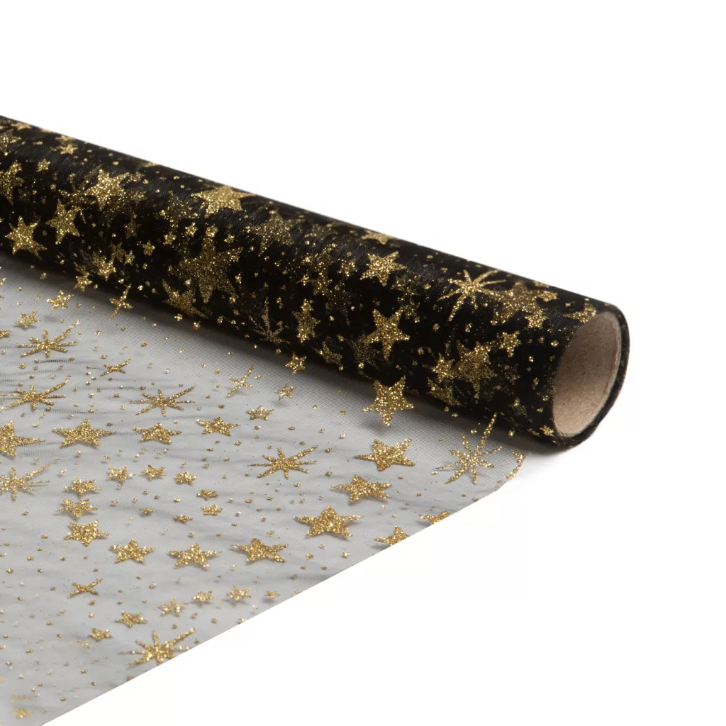Karácsonyi asztalterítő futó - fekete / arany - 180 x 28 cm