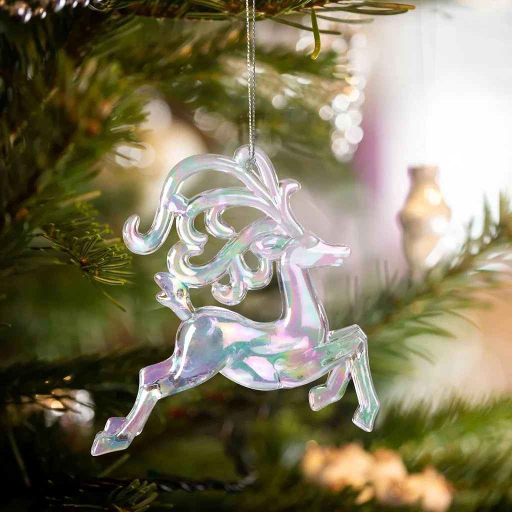 Ez a karácsonyi dísz egy különleges irizáló hatású rénszarvas, amelyek elegánsan díszíti a karácsonyifát vagy bármely más ünnepi összeállítást. Az akrilból készült dísz könnyű, mégis strapabíró, így évről-évre újra felhasználható. Az irizáló hatás miatt a dísz színei változnak az árnyékoktól és a fénytől függően, ami még varázslatosabbá teszi a karácsonyi díszt. Az elegáns megjelenésének köszönhetően ez a karácsonyi dísz kiváló ajándék lehet szeretteinknek vagy barátainknak is.