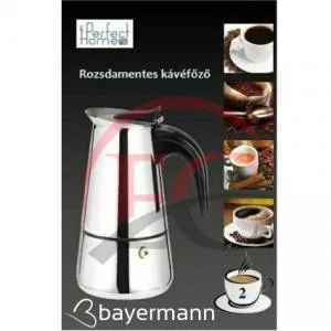 - A dekoratív, 2 személyes kotyogós kávéfőző praktikus, cseppmentes kiöntője biztosítja a könnyű kezelhetőséget. - A kotyogós kávéfőző anyaga rozsdamentes acél, a fogantyúja fekete színű hőálló műanyagból készült. - A biztosító szelep óvja a kávéfőzőt a túlnyomás ellen. - A szűrőrészén található gumitömítés pedig véd a szivárgás ellen. - A kávéfőzés beindulását a jellegzetes kotyogó hang jelzi. - A kotyogós kávéfőző működtetése közepes lángon ajánlott. - A 2 személyes, kotyogós kávéfőzőt Ön használhatja gáztűzhelyen, elektromos és üvegkerámia főzőlapon is. - Műszaki eszközök és berendezések korrekt áron, jó szállítási feltételekkel, megbízható vállalattól. - Tisztítása könnyű és egyszerű, az első használat előtt javasolt a készülék tiszta vizes átmosása, majd az első adag kávé kiöntése.