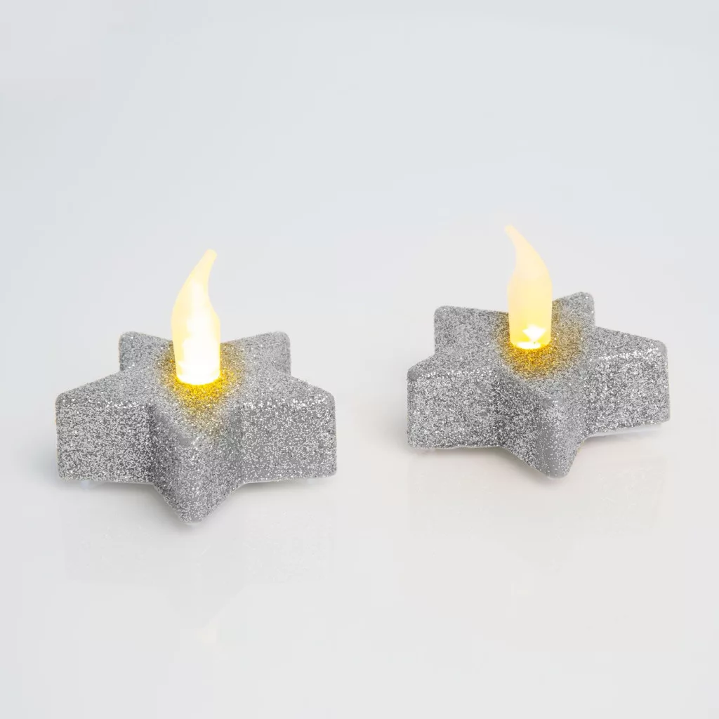 Csillámos, csillag alakú LED-es teamécses, amely nem gyúlékony, nem veszélyes, a szél sem fújja el. A kis mécsesben lévő LED véletlenszerű villódzásával a gyertyaláng hatását kelti. Egyszerűen ki/be kapcsolható az alján található kapcsolóval. 1 db CR2032 típusú gombelemmel működik, amely tartozék.