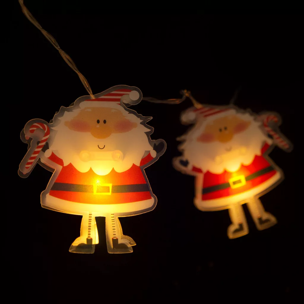 Vidám, mikulás figurás fényfüzér, amely azonnal jókedvre deríti a családot. Az átlátszó kis mikulásokat melegfehér LED-ek világítják meg, így otthonában minden irányból csodálatos vizuális élményt nyújt. Ideális lehet karácsonyfák, girlandok, polcok, koszorúk, függönyök díszítésére. A LED fényforrás alacsony energiafelhasználása miatt, elemmel is sokáig üzemeltethető.