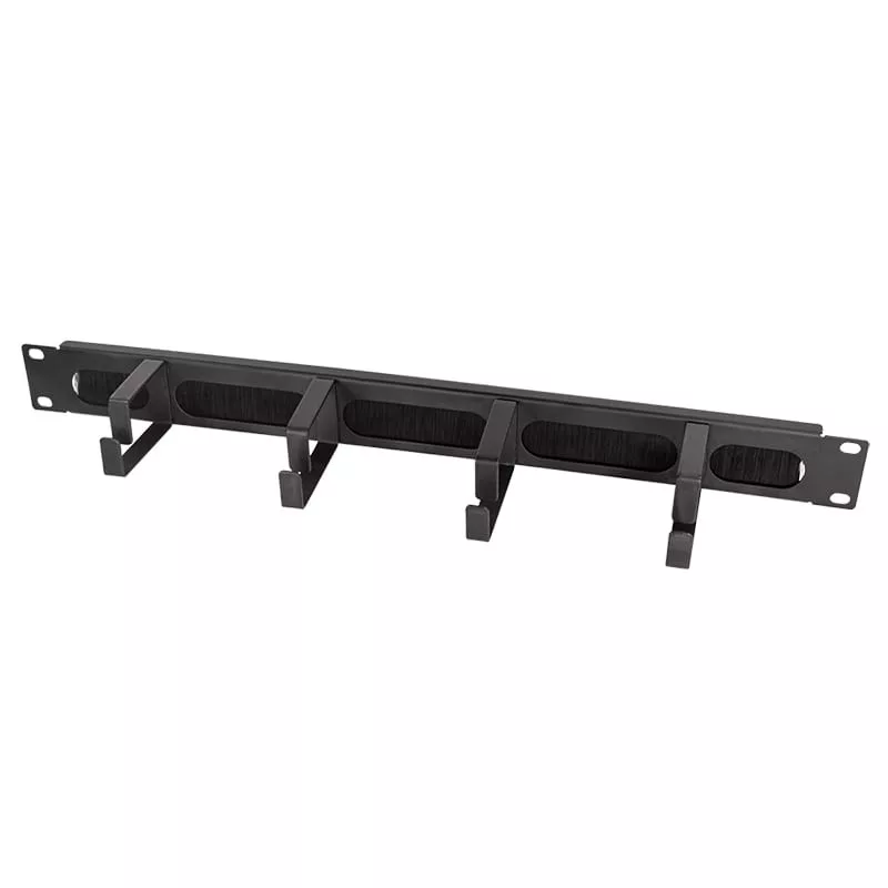 Erős kábelvezető rúd az optimális kábelvezetéshez a 19"-os szekrényben. Vízszintes beépítéshez a 19"-os profilszintben (1U). Porvédő kefecsíkkal a kábelek belső átvezetéséhez és 4 kábeltartóval az áttekinthető kábelkezelésért. Jellemzők 19" kábelkezelő panel A szétválogatott és tiszta kábelvezetésért Vízszintes telepítés, 1U 4 masszív kábelakasztóval és kefecsík Anyaga: 1,5 mm-es acél Szín: Fekete RAL 9005