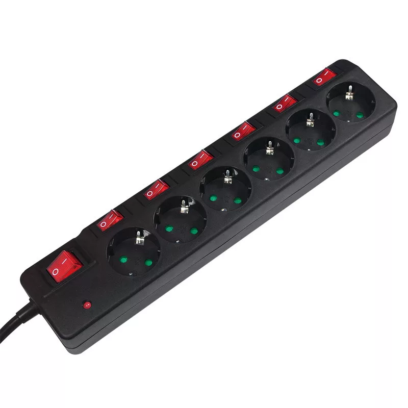 Minden aljzat külön-külön kapcsolható; egy további főkapcsolóval a teljes aljzatszalag be- és kikapcsolható
