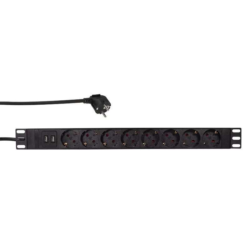 8x német aljzat, 45 -os szögben + 2x USB-A 2,1 A-enként