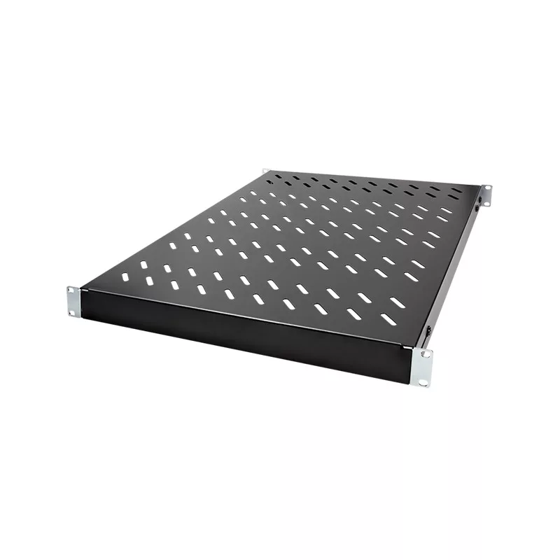 Univerzális polc 19"-os szekrényekhez, 800 mm mélységgel Rögzítés első és hátsó 19"-os profilokra Állítható beépítési mélység: 574-720 mm Munkafelület: 440 x 570 mm, perforált Statikus teherbírás 50 kg-ig Rögzítési anyag mellékelve Szín: fekete, RAL 9005 Általános termékadatok: Súly: 3,2 kg Magasság: 4,4 cm Szélesség: 44 cm Hossza: 57 cm