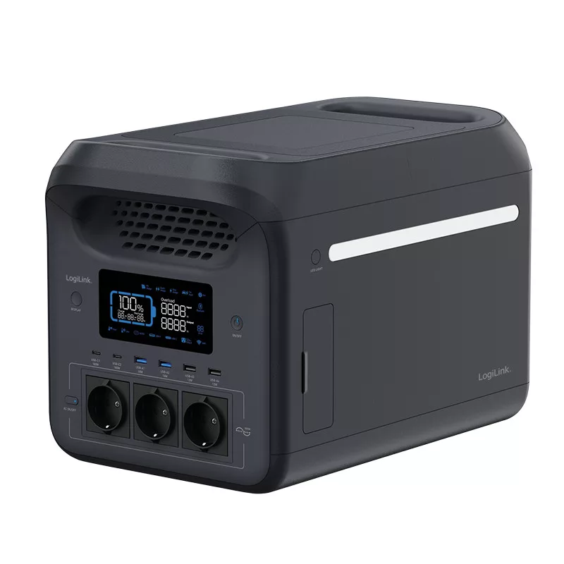 Erőteljes, tartós és stabil energiamegoldás LiFePO4 akkumulátorral Tápegység 12 készülékhez, akár 1229 Wh-val A tökéletes vészhelyzeti tápegység bel- és kültérre 3x AC, 4x USB-A, 2x USB-C, 2x DC5521 és 1x autós töltőporttal felszerelve Bemenetek: 1x AC 220-240 V/10 A, 50/60 Hz (max. 1800 W), 1x napelem: 13-45 V/12 A (max. 400 W), 1x autós töltőcsatlakozás: 12/24 V, DC 8 A Kimenetek: 2x USB-A (QC) 5 V/3 A, 9 V/2 A, 12 V/1,5 A (max. 18 W) Eszközvédelem: Túlmelegedés, alacsony hőmérséklet, túlkisülés, túltöltés, túlterhelés, rövidzárlat és túláram elleni védelem Tartozékok: 1x AC kábel, 1x autó töltőkábel Méretek: 43.2 x 27 x 30 cm Súly: 22 kg Szín: Fekete