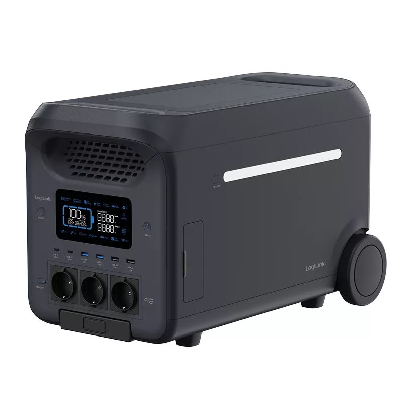 Megbízható és stabil energiamegoldás LiFePO4 akkumulátorral és kiegészítő akkumulátorcsatlakozással Tápellátás 13 készülékhez, akár 2560 Wh-val A tökéletes vészhelyzeti tápegység bel- és kültérre 3x AC, 4x USB-A, 2x USB-C, 1x Anderson terminál, 2x DC5521 és 1x autós töltőporttal felszerelve Bemenetek: 1x AC 220 240 V/10 A, 50/60 Hz (max. 2300 W), 1x napelem: 13 45 V/12 A (max. 800 W), 1x autós töltőcsatlakozás: 12/24 V, DC 8 A, 1x csatlakozás az akkumulátor bővítéséhez Kimenetek: 2x USB-A: (QC) 5 V/3 A, 9 V/2 A, 12 V/1,5 A (max. 18 W) / 2x USB-A: 5 V/2,4 A (max. 12 W), 2x USB-C: 5, 9, 12, 15 V/3 A, 20 V/5 A (max. 100 W), 2x DC5521: 12,6 V/3 A, Auto: 12,6 V/10 A (max. 126 W) Eszközvédelem: Túlmelegedés, alacsony hőmérséklet, túlkisülés, túltöltés, túlterhelés, rövidzárlat és túláram elleni védelem Tartozékok: 1x AC kábel, 1x autó töltőkábel Méretek: 53.6 x 30.3 x 34.3 cm Súly: 34 kg Szín: Fekete