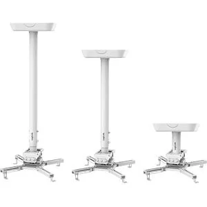 A nagy teherbírású mennyezeti projektortartó helytakarékos és különböző mennyezetmagasságokat támogat; a sokoldalú karállítás bármilyen környezethez alkalmazkodik, így a képernyő szöge mindig a tökéletes magasságban van. A kiváló minőségű acéltartó biztosítja a tartósságot és a stabilitást; akár 35 kg teherbírást is elbír. Az integrált kábelkezelés tiszta és rendezett megjelenést is biztosít. Stabil és egyszerű kialakítás Szerelési típus: Sík mennyezetre alkalmas Sík mennyezetre alkalmas Súlyterhelés: max. 35 kg. Négy állítható tartókonzollal érkezik, amelyek a szerelőnyílások széles skálájához illeszkednek Mennyezeti távolság: Projektor <> mennyezet 595-895 mm Forgathatóság: A projektor és a mennyezet közötti távolság: 595-895 mm: 360 , dőlés: -20 /+20 , elforgatás: -8 /+8 Tömör gömbcsuklós szerkezet 360 -os elforgatást és 20 -os dőlést tesz lehetővé a többféle látószögű megtekintéshez Kábelkezelés: Elegánsan elrejti a kivetítőhöz csatlakoztatott összes kábelt Szerelési tartozékokat tartalmaz Szín: Fehér Translated with www.DeepL.com/Translator (free version)