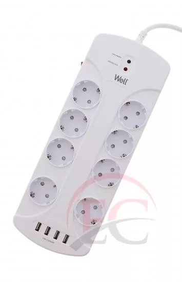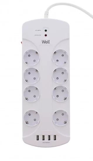 Well EXTS-8S3M-PROT-USB4-WL Nyolc férőhelyes földelt kapcsolós elosztó + 4x USB