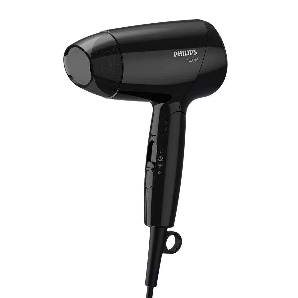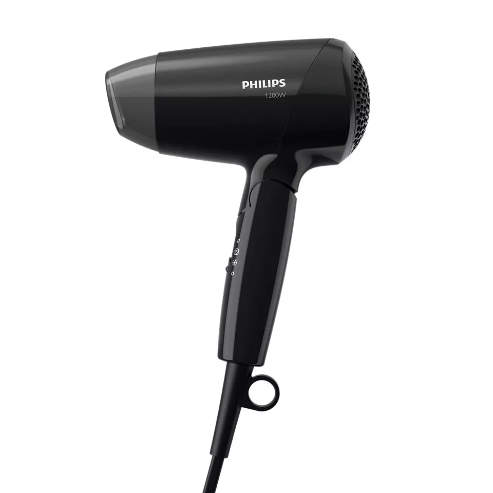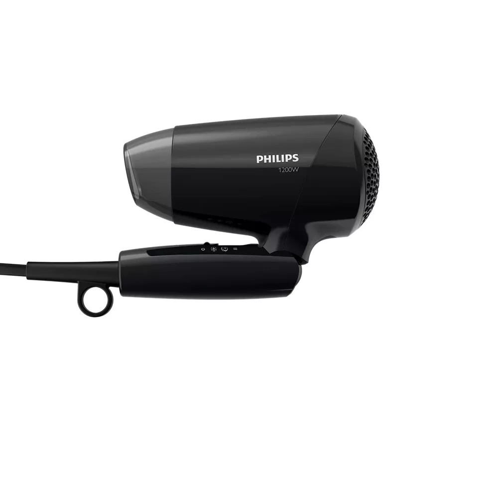 A hajszárító fogantyúja behajtható. Az eredmény egy kicsi és könnyű hajszárító, amely bárhol elfér, és amelyet épp ezért bárhová magával vihet.