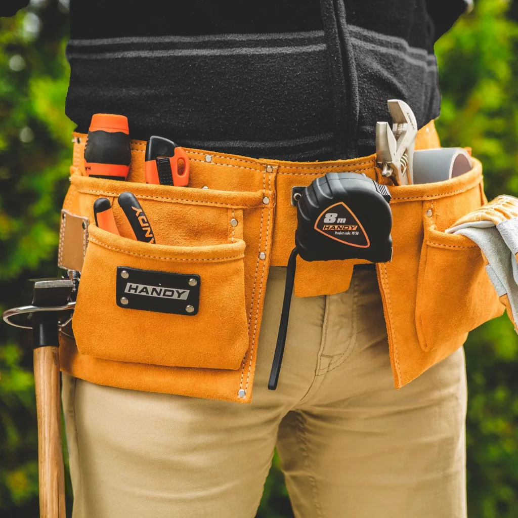Minőségi, hasított bőrből készült szerszámtartó öv. Egy-egy munkafolyamat során szükséges szerszámot mindig magánál tudhatja, így nem szükséges visszajárni a szerszámosládához a megfelelő eszközért. A hasított bőr és a szegecselések kellő merevséget és strapabíróságot adnak, ugyanakkor kényelmes viseletet biztosítanak munka közben.