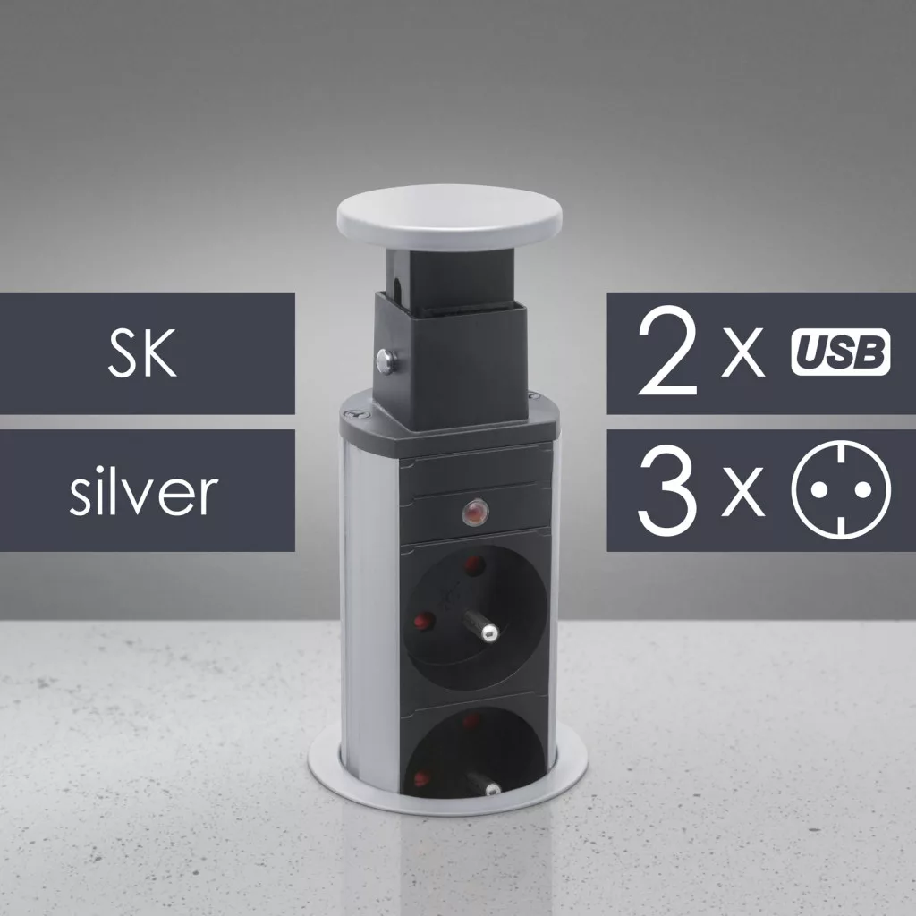 Süllyeszthető elosztó irodai és otthoni felhasználásra, fém házzal. Asztala, bútora legyen mindig elegáns és rendezett, mégis funkcionális. A rejtett elosztó kiváló megoldás lehet ha már például kész konyhával rendelkezik, de nincs elegendő konnektor a kívánt helyen. Ilyenkor falvésés és villamos hálózat bővítés nélkül, remek alternatíva lehet egy rejtett elosztó. Egy mozdulat és máris rendelkezésre áll 3 szabad konnektor. Ideális lehet olyan elektromos eszközökhöz, amit nem folyamatosan használunk, kenyérpirító, vízforraló... Ha használaton kívül vannak, a "töltőoszlop" egy mozdulattal elrejthető, ezzel is megkönnyítve például a takarítást, valamint rendezett, letisztult külsőt ad a helységnek.