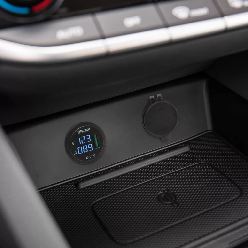 Autós szivargyújtó helyére beépíthető USB aljzat és feszültségmérő. Használatával nincs szükség a szivartyújtóba dugható USB adapterre, az egész szivargyújtó aljzat cserélhető, ezáltal megelőzhetőek az esetleges érintkezési hibák. A rejtett, LED kijelző kék színnel mutatja a pillanatnyi feszültséget és áramerősséget. A gumi zárókupak megakadályozza, hogy por, szennyeződés jusson az USB portba. Ez a zárókupak tetszés szerint eltávolítható.
