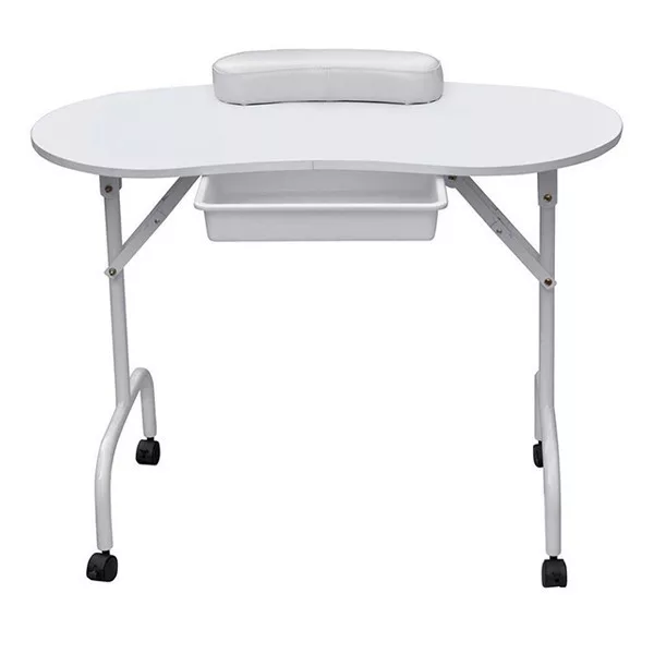 A hordozható fiókos manikűr asztal ideális megoldás szalonba vagy mobil körmös szolgáltatáshoz. Összecsukható lábai és vízálló hordtáskája révén könnyen szállítható, kis helyen is tárolható.