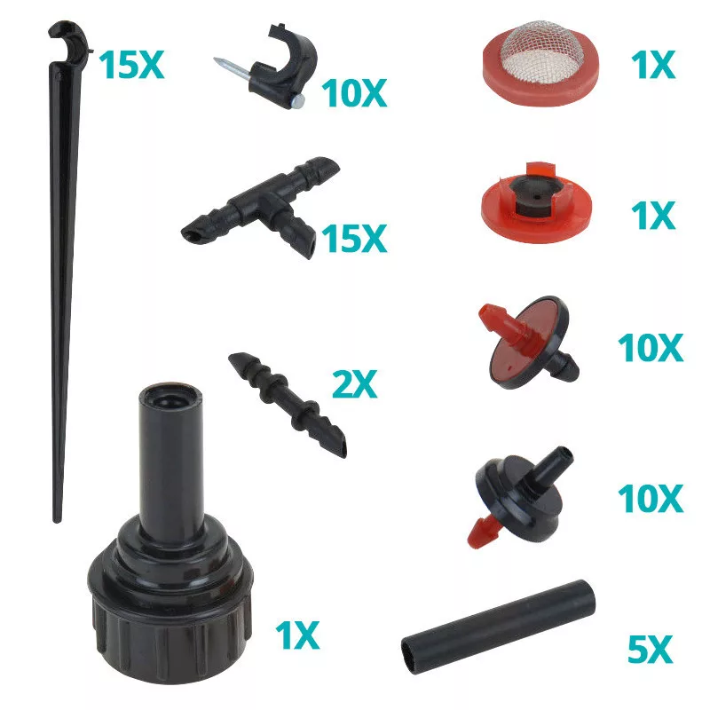 Tegye hatékonyabbá és víztakarékosabbá növényei öntözését ezzel az egyszerűen telepíthető csepegtető rendszerrel! A 23 méteres, vágható tömlő és a csatlakozók lehetővé teszik az öntözőhálózat testreszabását, hogy a víz közvetlenül a gyökerekhez jusson. Lassú, egyenletes vízellátásával csökkenti a vízfogyasztást, miközben optimális nedvességet biztosít. Ideális konyhakertek, virágágyások vagy üvegházak számára, így növényei mindig megfelelő gondoskodásban részesülnek!