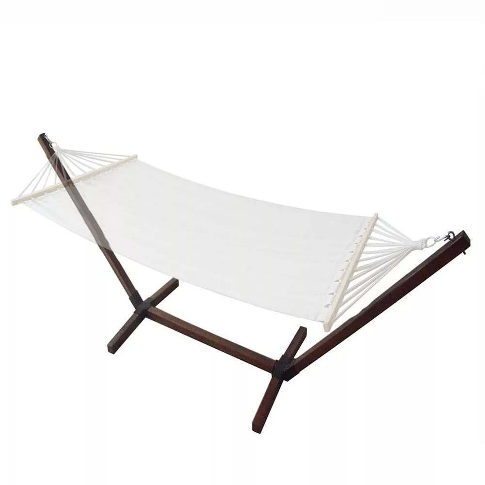 Ez a masszív függőágy állvány 120 kg teherbírású, stabil támasztólábakkal. Könnyen összeszerelhető, és bárhol felállítható, akár a kertben, akár egy nagyobb szobában vagy teraszon. A csomag minden szükséges tartozékot tartalmaz, így gyorsan élvezheted a kényelmes pihenést.