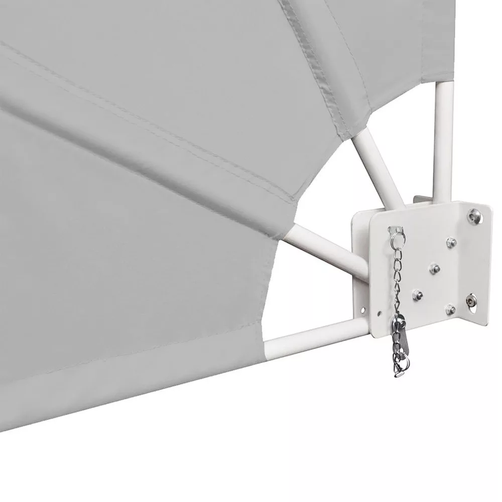 A legyező formájú erkélyárnyékoló ideális választás azoknak, akik védelemre vágynak a szél, nap és kíváncsi szomszédok ellen. A fém vázas szerkezet egyszerűen felszerelhető a falra, a levehető ponyva pedig könnyen tisztítható. Kinyitott állapotban biztosítószeg rögzíti, így biztonságos és stabil megoldást kínál minden erkélyre.