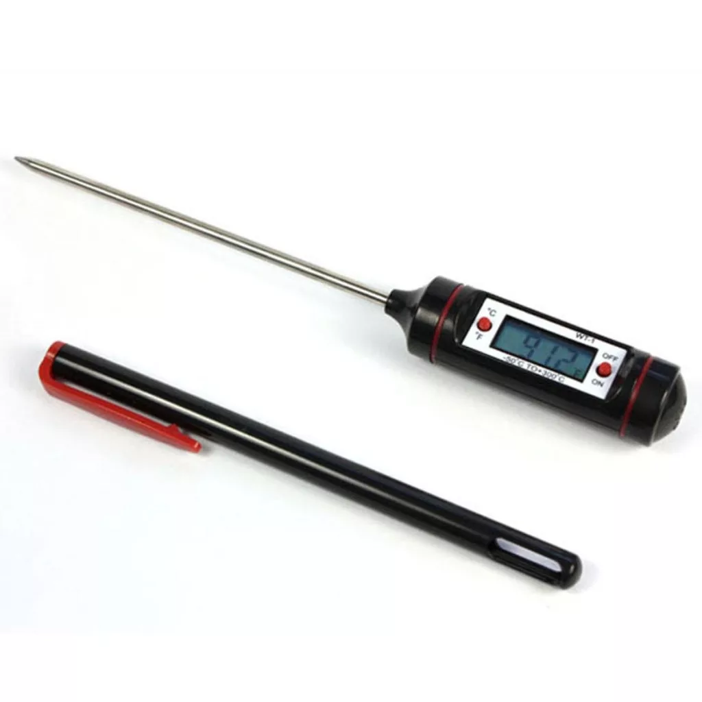 A csomag tartalmazza a digitális maghőmérőt. Mérési pontossága ±1 °C, így folyékony, puha és szilárd anyagokhoz egyaránt ideális. Kis helyen elfér, és pillanatok alatt használatra kész.