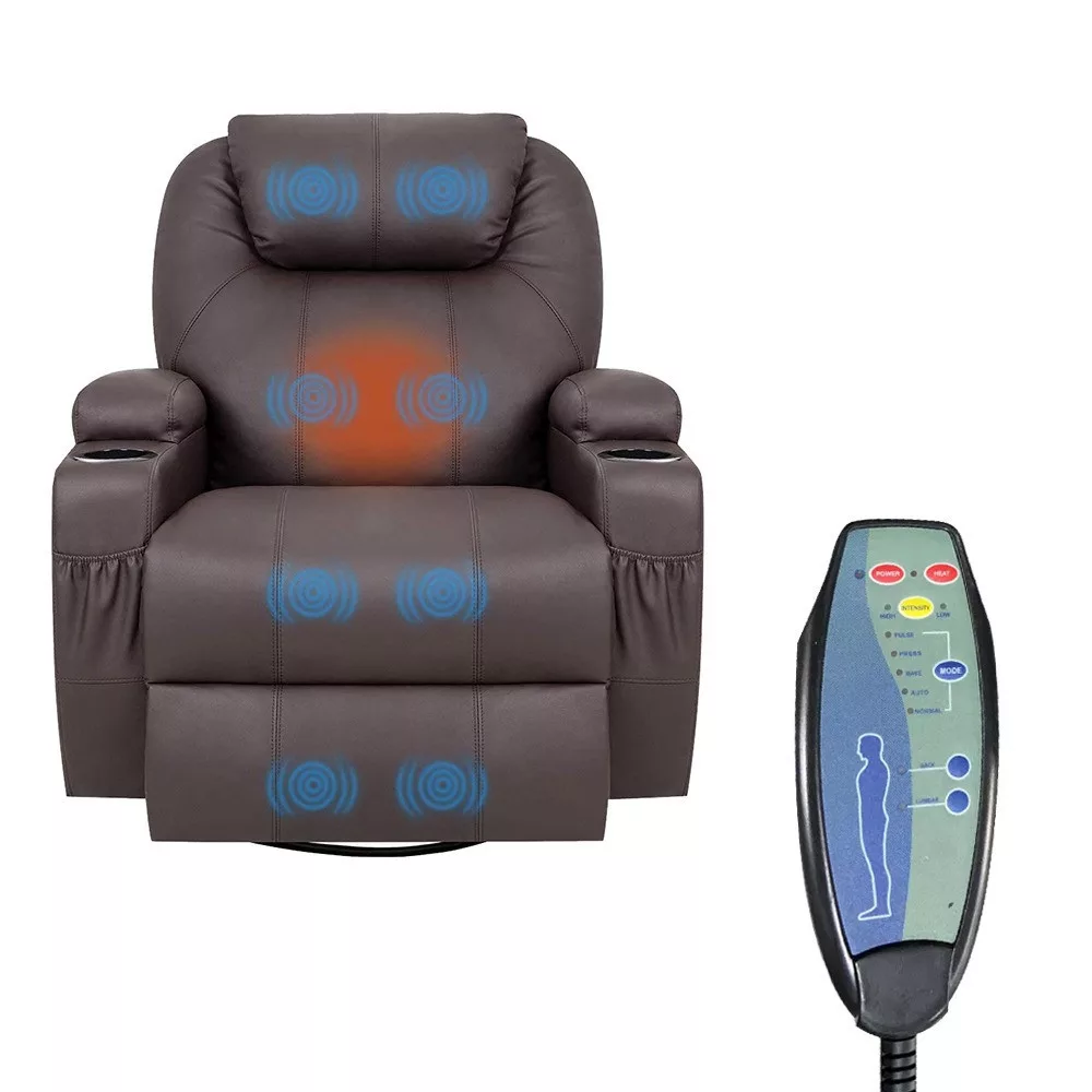 Élvezze a teljes testet átmasszírozó kényeztetést ezzel a barna, dönthető masszázsfotellel, amely 8 ponton stimulálja az izmokat a vállaktól a lábakig. A melegítő funkció, a távirányítós vezérlés, valamint a beépített pohártartók és tárolózsebek extra kényelmet biztosítanak. Strapabíró szerkezete és elegáns műbőr borítása ideálissá teszi olvasáshoz, pihenéshez vagy esti tévénézéshez. Tökéletes választás, ha otthon is szeretné élvezni a wellness nyugalmát.