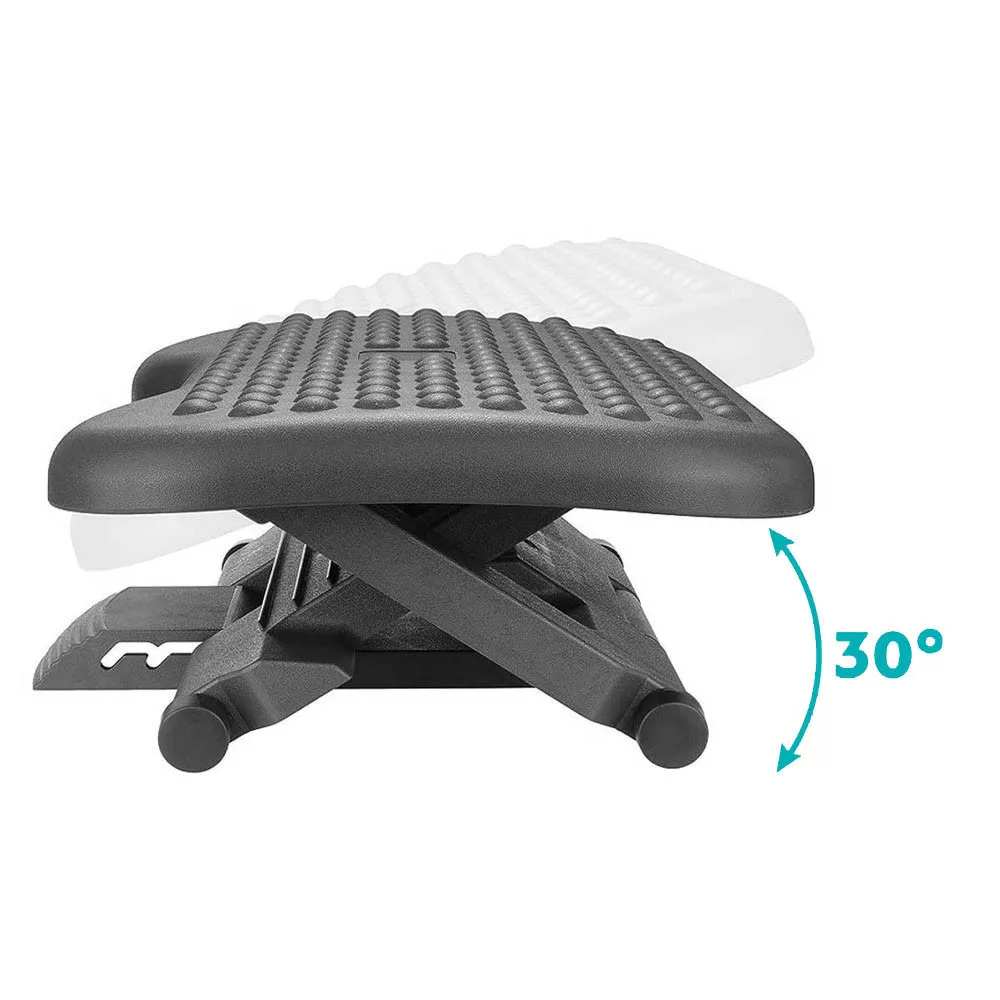 A lábtámasz három különböző magasságban állítható (11 cm, 14 cm, 17 cm), így egyéni igényeidhez igazíthatod. Emellett 30°-os szögben dönthető, hogy megtaláld a számodra legkényelmesebb pozíciót, akár munka közben, akár pihenésre használod.