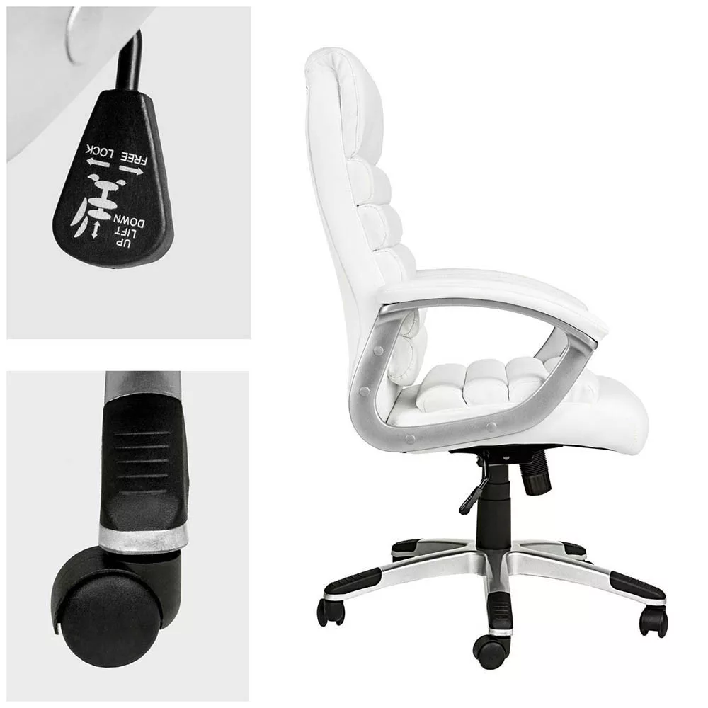 A prémium főnöki forgószék nemcsak esztétikus megjelenésével, hanem kiemelkedő kényelmével is tökéletes választás irodába vagy otthoni munkavégzéshez. Párnázott ülőfelülete és háttámlája hosszú órákon át biztosítja a megfelelő alátámasztást, míg szintetikus bőr borítása elegáns és könnyen tisztítható felületet kínál.