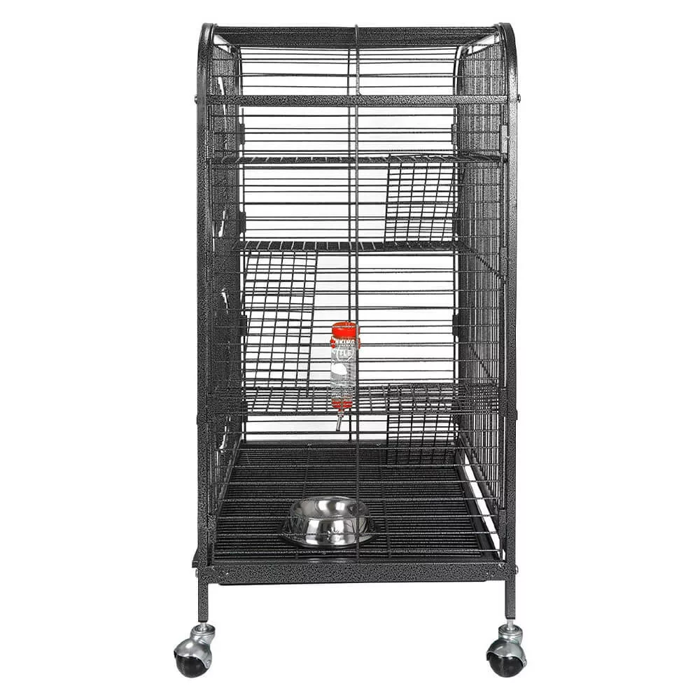 A ketrec három szintje és a hozzá tartozó létrák biztosítják, hogy kedvenced szabadon mozoghasson, felfedezhessen és játékkal tölthesse az időt. Az alapterület elegendő helyet kínál a pihenéshez, míg a polcok változatos környezetet teremtenek az aktív élethez.
