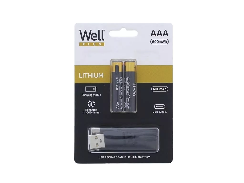 Li-Ion USB-C Micro AAA akkumulátor 1,5V 600mWh 400mAh USB-n keresztül tölthető