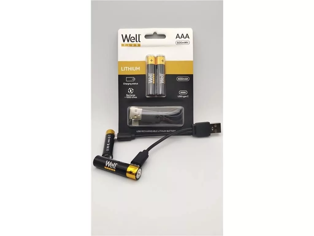 Feszültség 1,5 V, 600 mAh USB-C-n keresztül tölthető AAA (LR03) Gyors töltés. 20 perc Normál töltési idő: 40 perc Üzemi hömérséklet: -20-60˚C