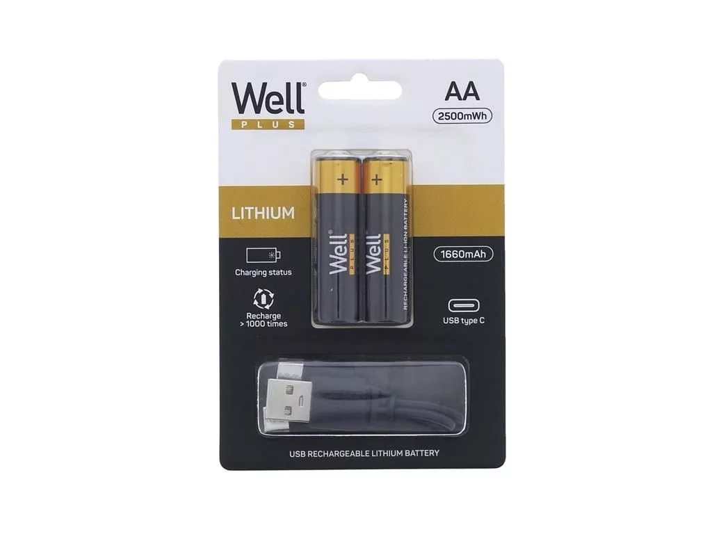 Li-Ion USB-C AA akkumulátor 1,5V 2500 mWh 1660 mAh USB-n keresztül tölthető