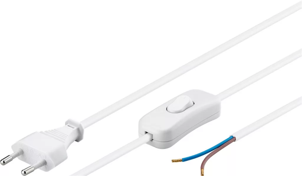 Well CABLE-PWSW-1XEU/2M-WE-WL Kapcsolós hálózati kábel szabad vezeték véggel 2 m, fehér
