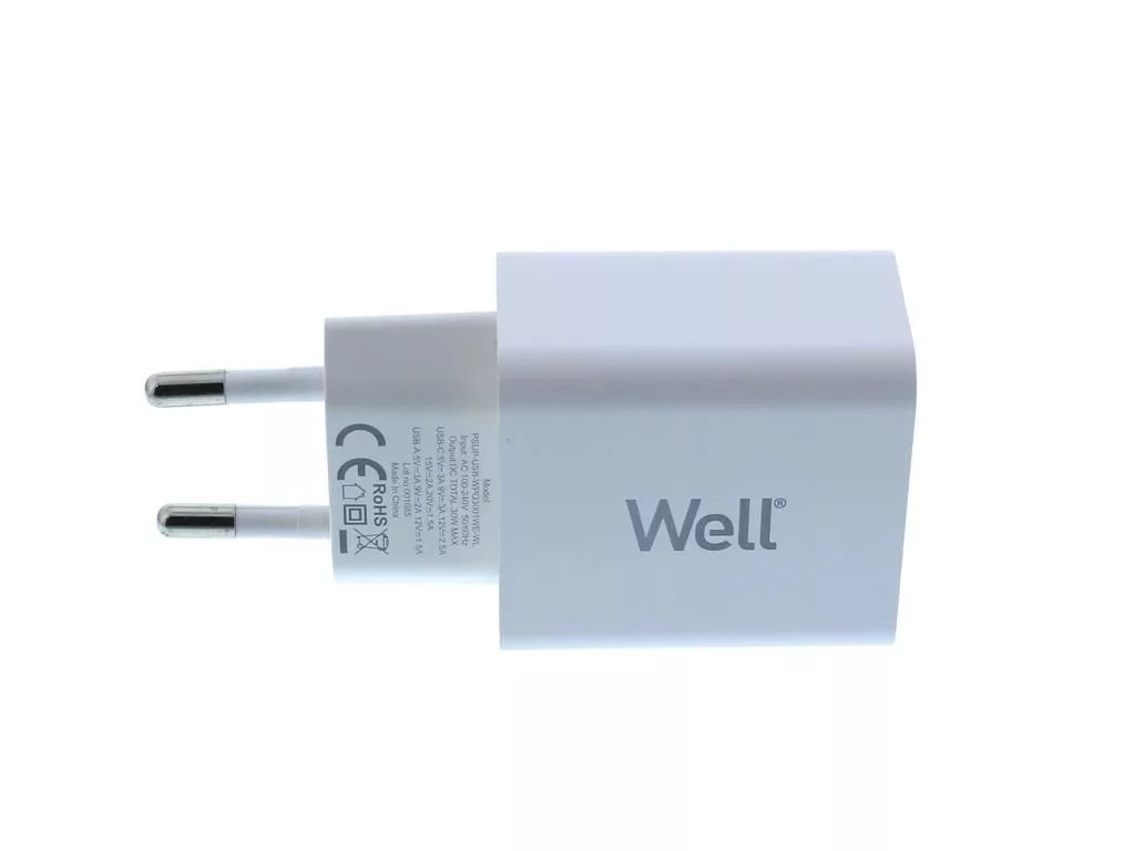 A Well egy fejlett fali töltő egyetlen 30 W-os USB-C PD aljzattal. Elegendő energiát biztosít a legnagyobb elérhető mobileszközök gyors feltöltéséhez. A klasszikus megjelenés minden típusú enteriőrbe illik, a kidolgozás minősége pedig azt jelzi, hogy masszív és tartós készülékről van szó. A Well rendkívül könnyű és mindössze 42,5 x 26,6 x 81,3 mm méretű. Nem fog sok helyet foglalni a hátizsákban! A készülék 100-240 V univerzális feszültséggel is kompatibilis, így külföldön is problémamentesen használhatja. Teljesítmény: 30W USB-C: 5V/3A 9V/3A 12V/2,5A 15V/2A 20V/1,5A Hálózati töltő adapter Könnyű, praktikus és hordozható 100-240V feszültség 50/60Hz 1xUSB-C csatlakozóval